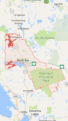 The District of Nipissing has a population of approximately 85,000 people covering 17,000 square kilometers. This includes 11 municipalities, two First Nations and two unorganized areas; Nipissing North and Nipissing South.