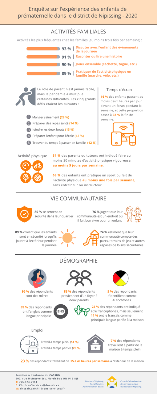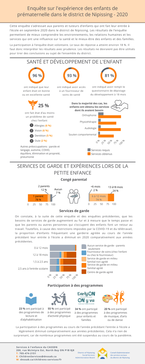 | PDF Document | Enquête Sur L'expérience Des Enfants De Prématernelle Dans Le District De Nipissing 2021 | Télécharger |